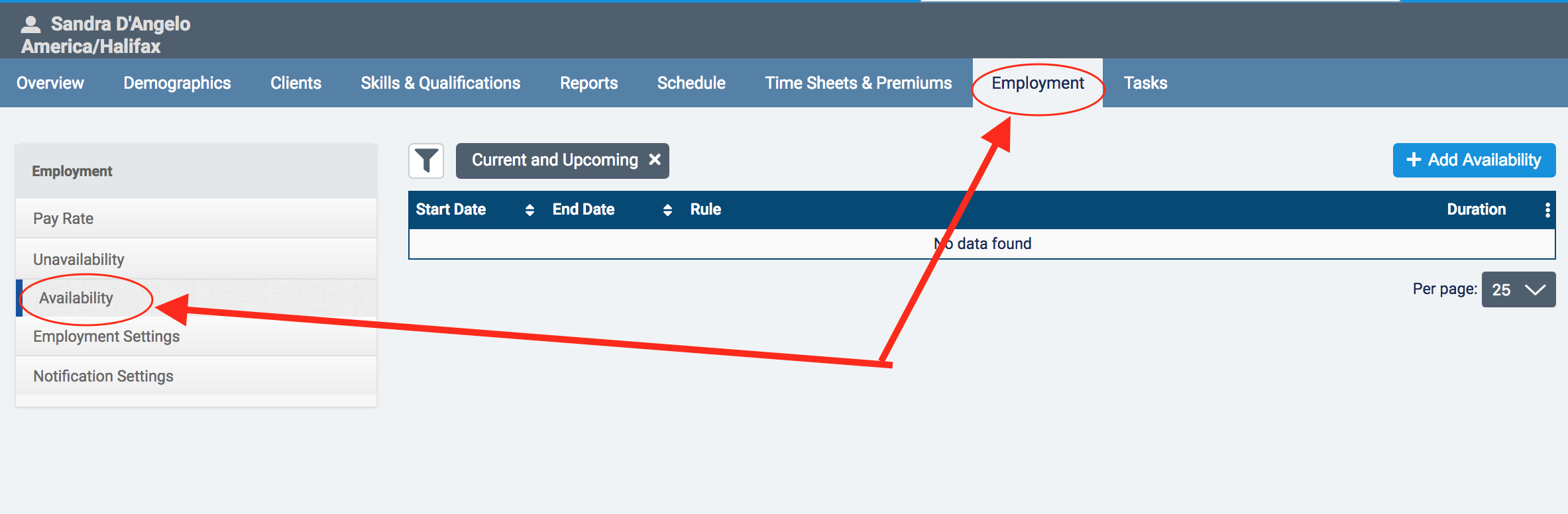 Adding Availability Directly via the Employee Schedule and Facility Schedule.