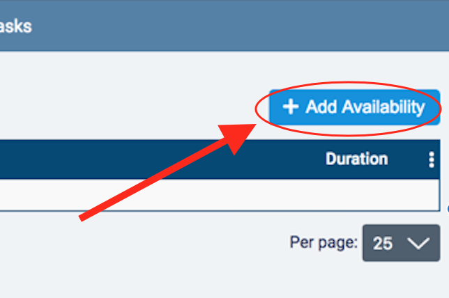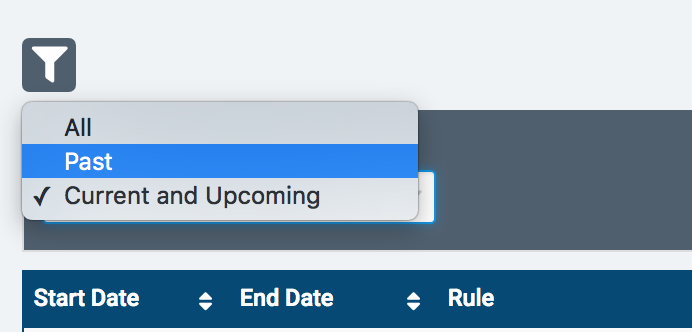 2. Availabilities can be filtered by Past, Current and Upcoming, or All by clicking on the icon.