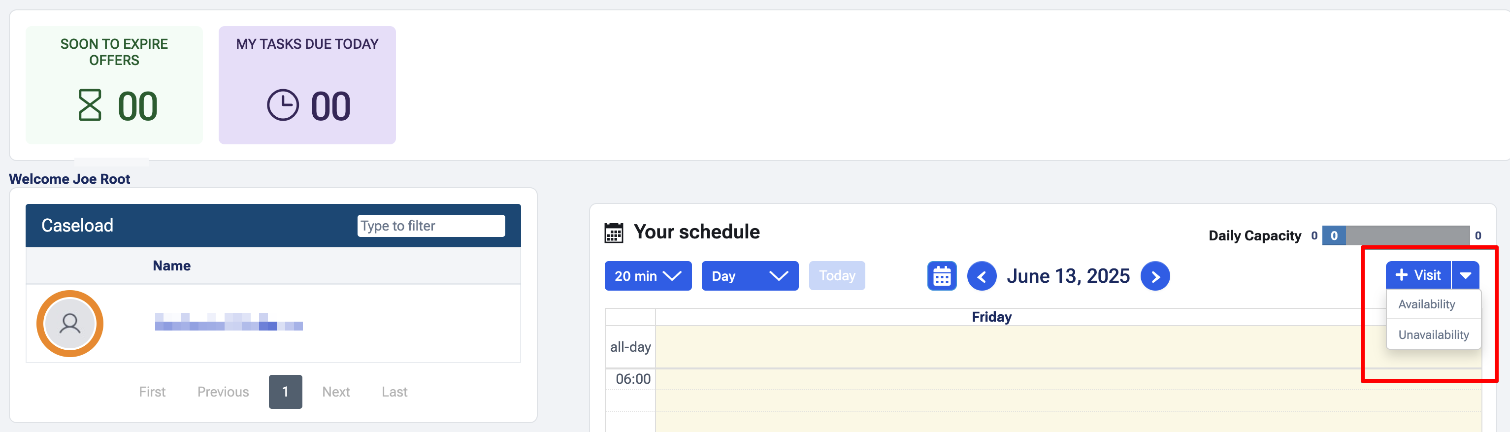 If you try to schedule single visits that partially overlap with an unavailability, you will receive a warning upon creation.